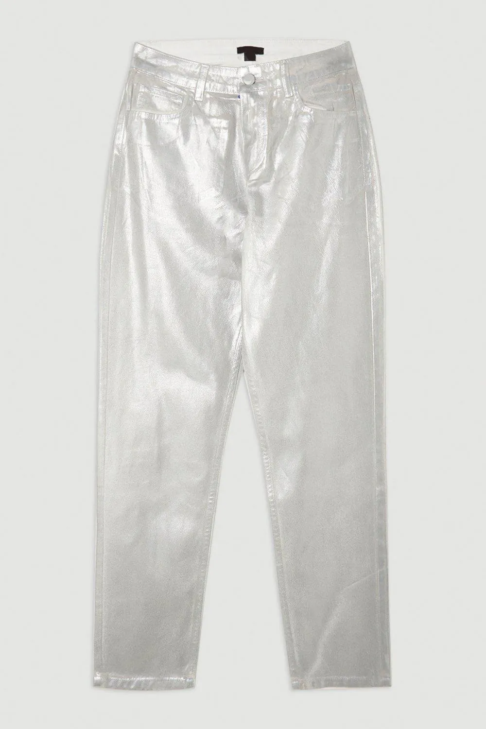 High Rise Slim Leg Silver Foiled Trouser 415452