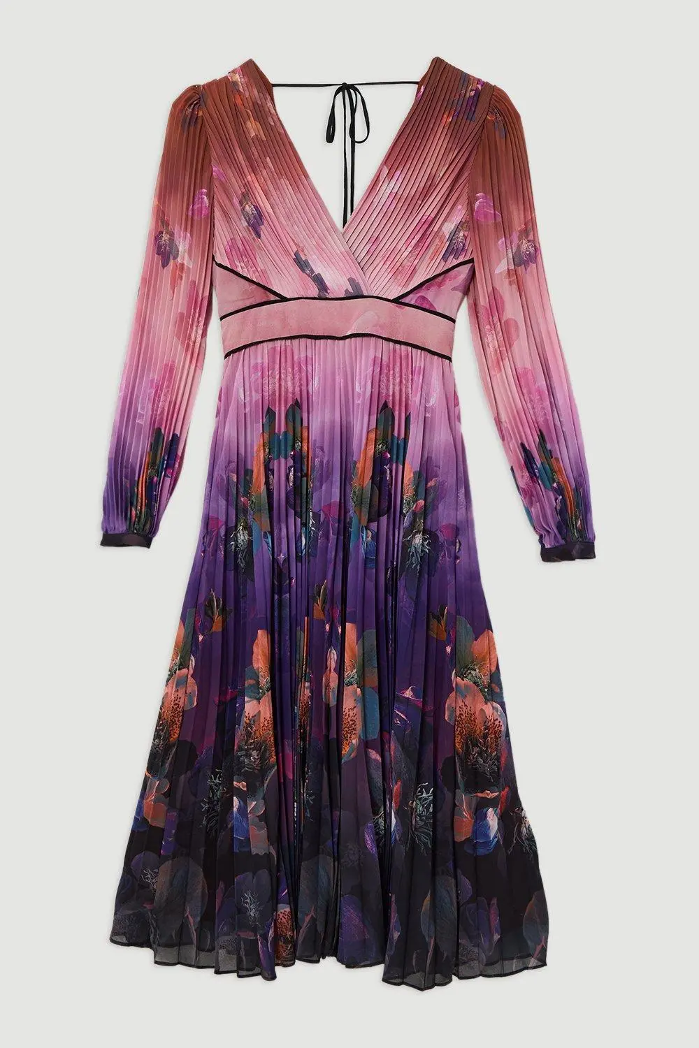 Ombre Floral Soft Pleated Long Sleeve Maxi Dress