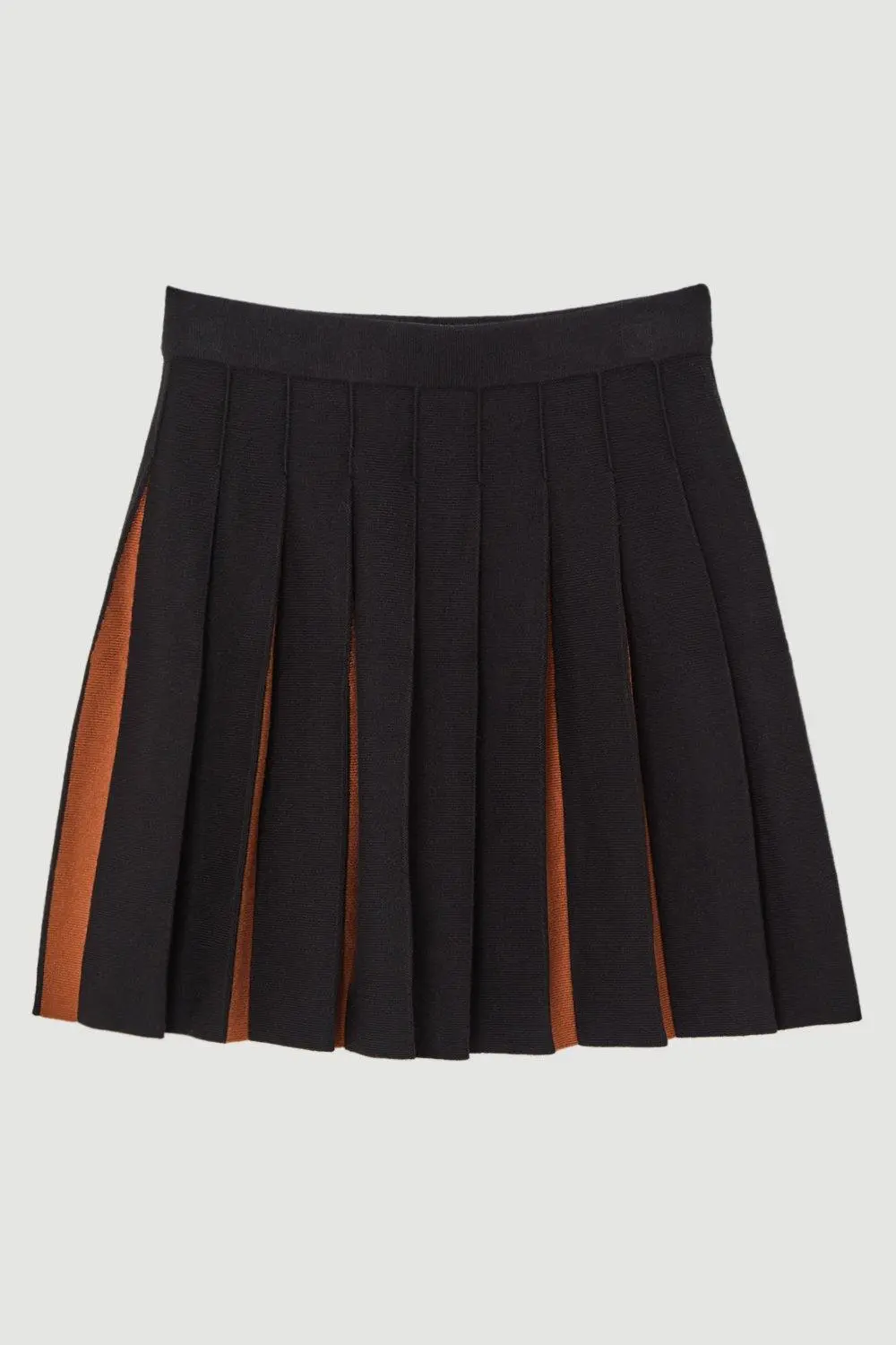 Pleated Wool Look Contrast Knit Mini Skirt 415245